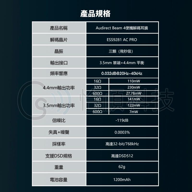 Audirect Beam4 是一款為了解決傳統小尾巴(Dongle)通病而生的產品。透過內置 1200mAh 鋰電池,Beam4 不僅能提供更純淨的電流、大幅降低底噪,還能確保在高阻抗耳機下擁有穩定的動態輸出,同時完全不消耗您的手機電量。