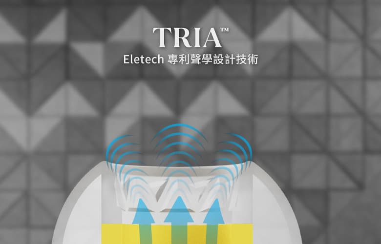 TRIA™ 聲學設計源於隔音板原理,有效分散聲波避免聚焦與共鳴,使樂器與人聲更自然分離、層次清晰。