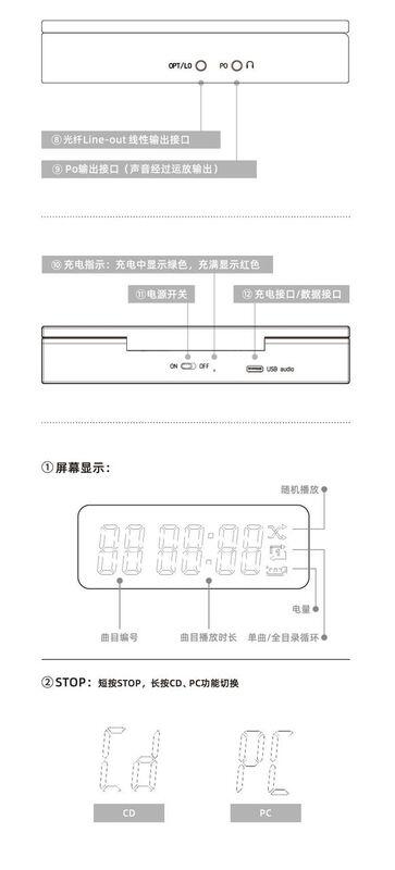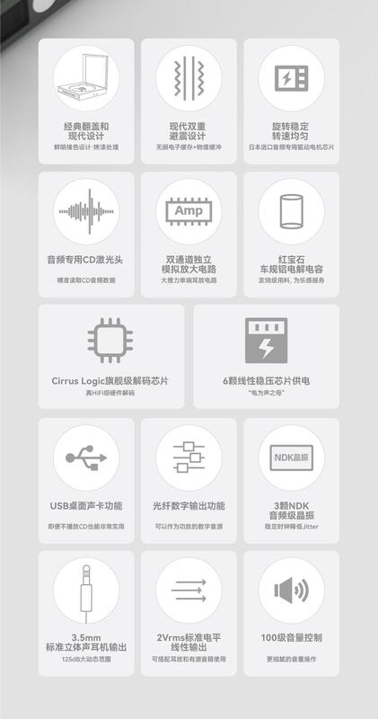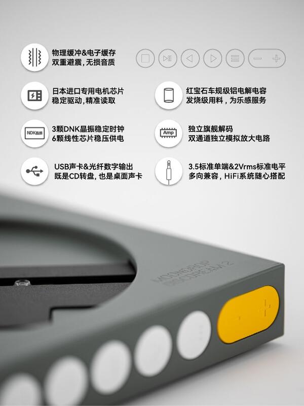 資料快取電路的電子快取和彈性阻尼物理緩衝相結合,進一步減少振動對CD播放的影響;