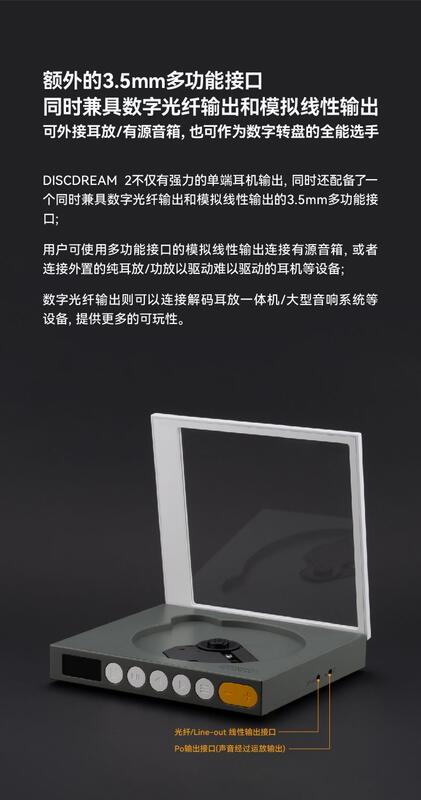 DISCDREAM 2 Ultra不僅有強力的平衡/單端耳機輸出,同時還配備了一個同時兼具數位光纖輸出和類比線性輸出的的3.5mm多功能介面;