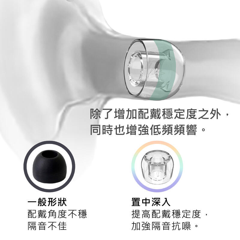 3. 置中深入的導音管,增強配戴穩定之外,加強隔音抗躁,