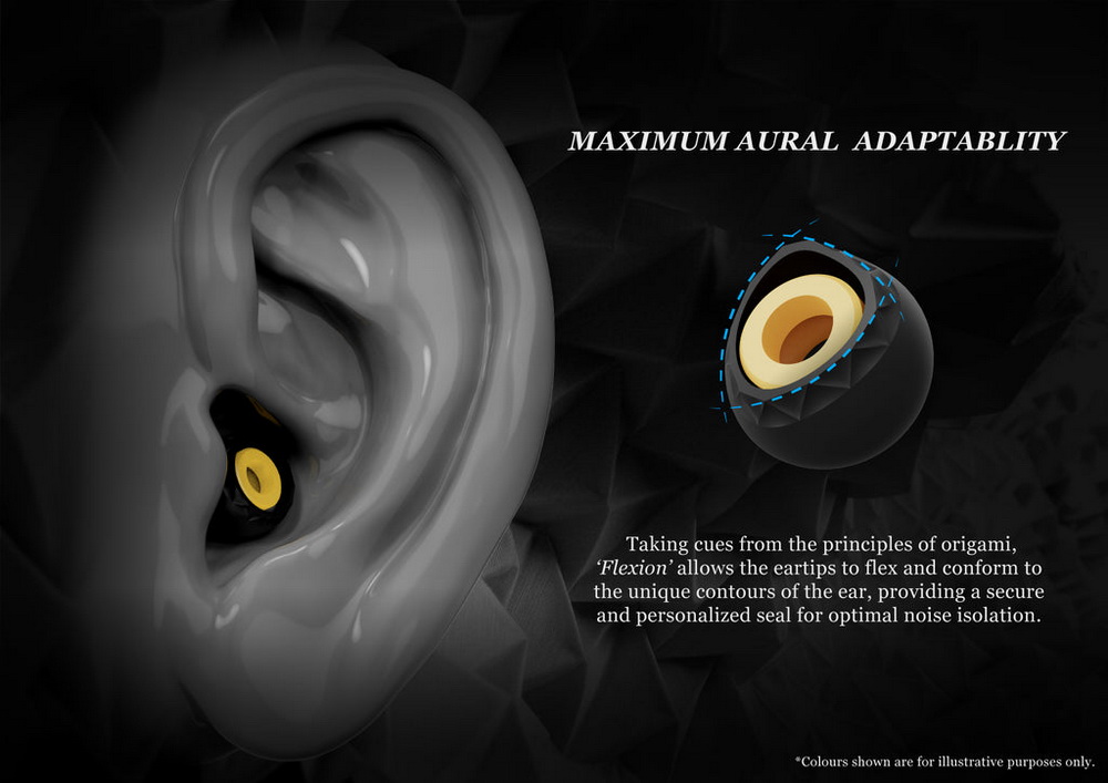 『Flexion™』耳塞末端的摺紙型人體工學設計,在末端使用幾何三角圖形設計,