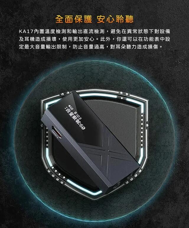 1.本產品內容物包含:KA17*1、專用皮套*1、雙Type-C短數據線*1、Type-A轉Type-C轉接頭、USB防塵塞*2。圖中手機、電腦、擴大機...等僅為示意圖,無包含於產品內。