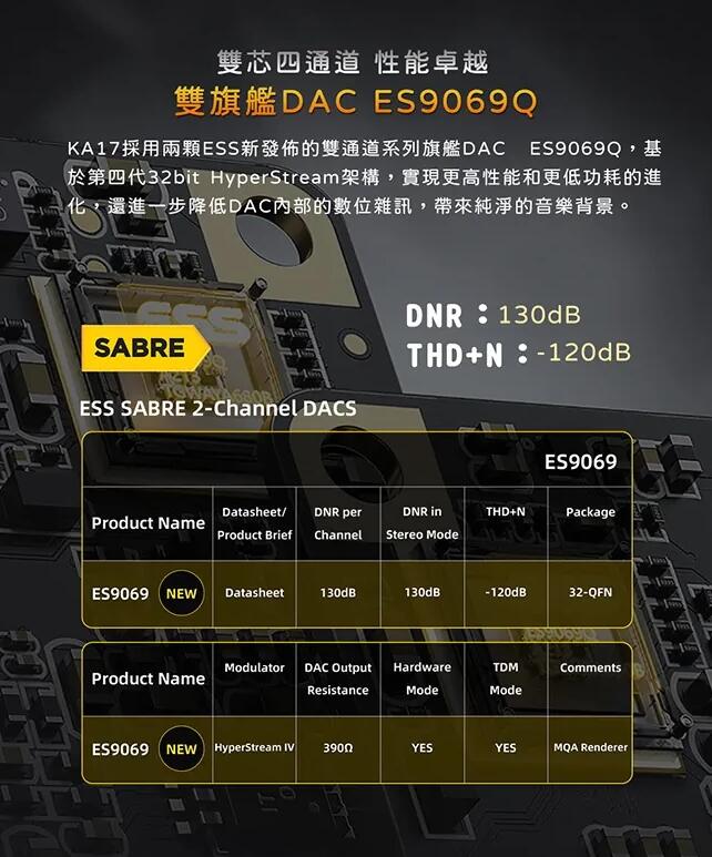 ● 雙旗艦DAC晶片ES9069Q