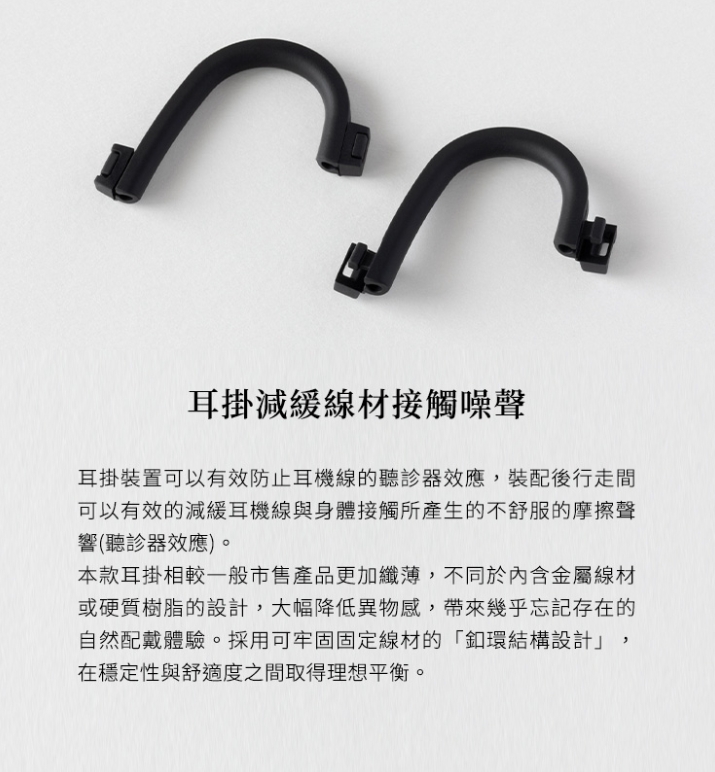 ● 附多尺寸矽膠耳塞與耳掛,提升穩定度與舒適度