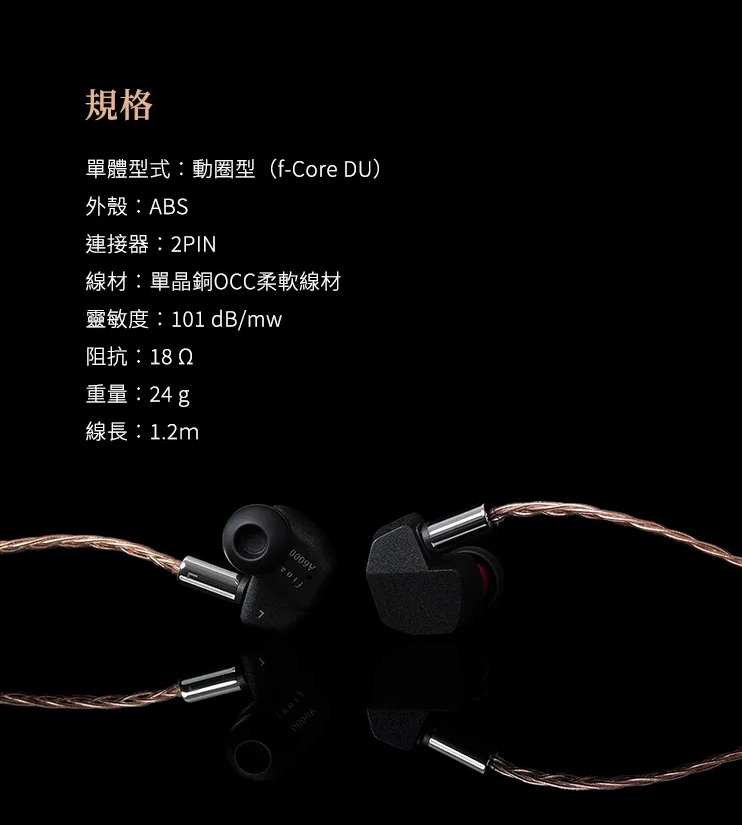 - 單體型式:動圈型(f-Core DU)不鏽鋼封裝黃銅單體