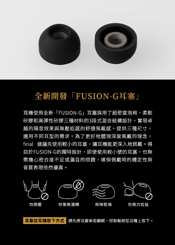 ● 全新「FUSION-G」三段式耳塞,融合舒適與強力隔音