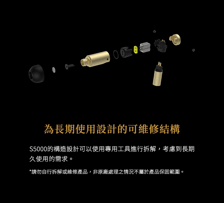 為了讓「音色迴響系統」發揮極致,S5000 採用黃銅材質打造前後腔體,並進行高精度切削與離子鍍處理。除了能有效抑制不必要共鳴外,也呈現簡約質感與高級美學。