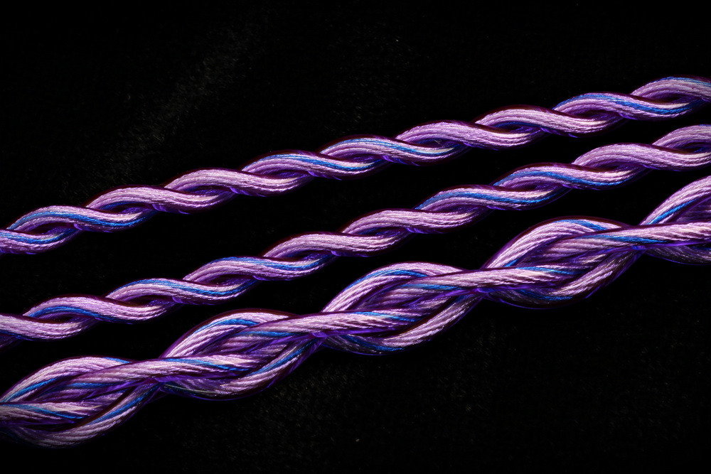 線身外披覆採用醫療級PVC包覆,柔和優雅的紫羅蘭色彩,時尚且個性十足,單股藍色銅鍍銀里茲線隱藏在紫羅蘭色之中,這樣的配色不僅與線芯相得益彰,還為產品增添年輕又有活力的極緻品味。