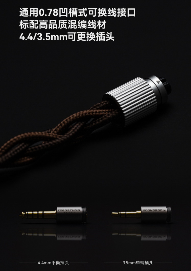 ● 配備高品質混編可換線材,支援 0.78mm 2Pin,可更換 3.5mm / 4.4mm 插頭