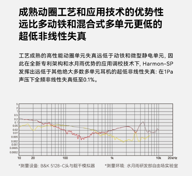Harmon-SP 經水月雨聲學團隊調校,實現符合 VDSF Target Response 曲線的頻響特性,聲音自然真實,音場寬廣。非線性失真更低至 0.1% 以下,帶來乾淨穩定的音樂細節。