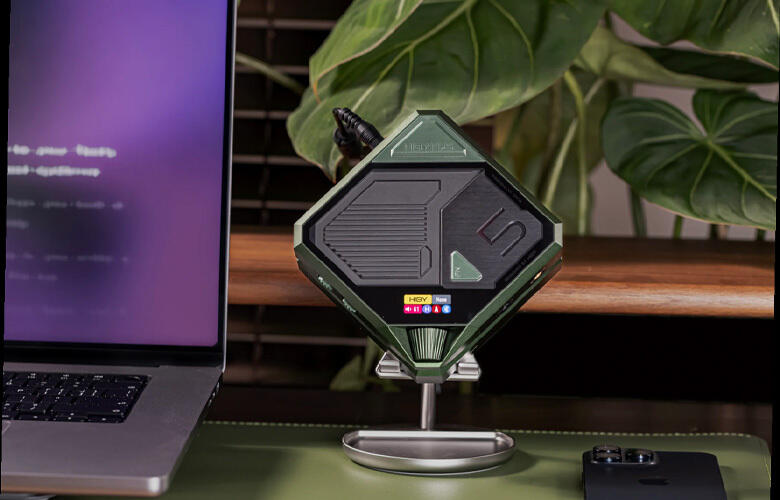 鋁合金外殼加上玻璃面板,滲修 cyberpunk 元素,彩色顯示屏隨狀態切換顯示,