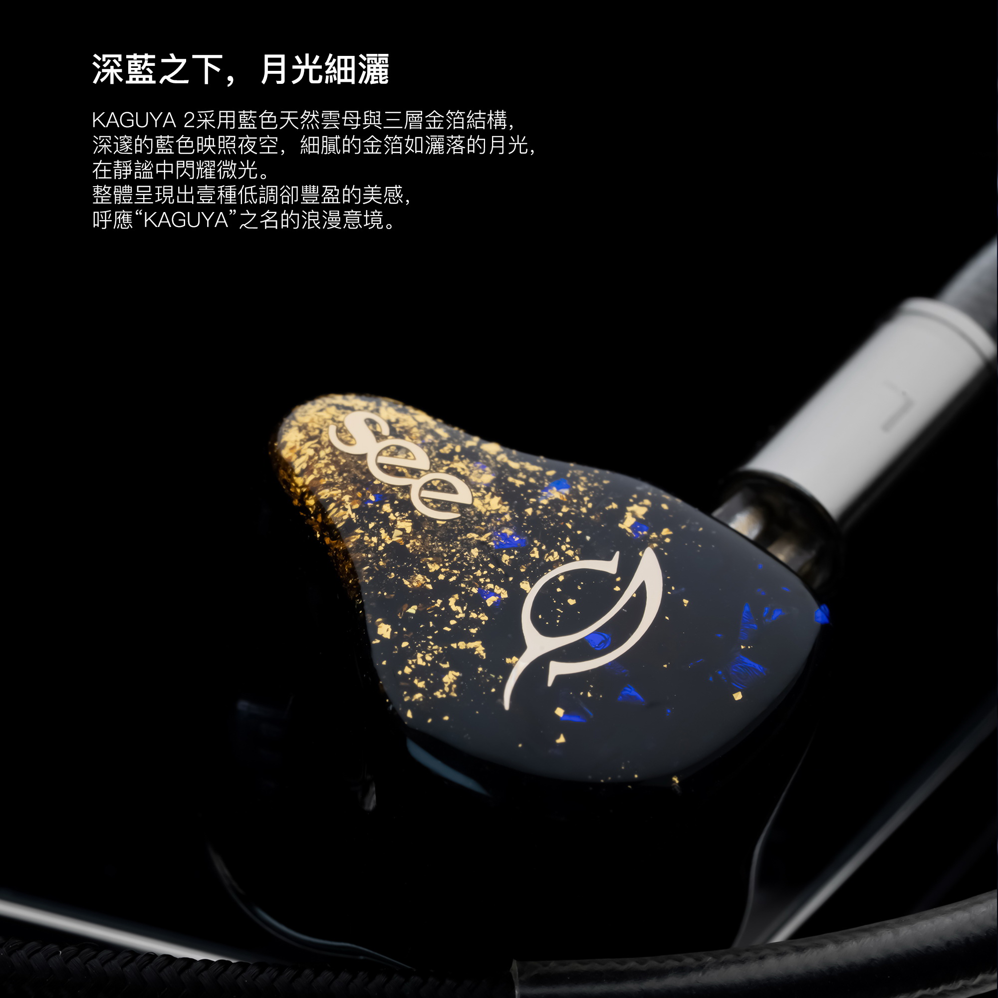 延續輝夜系列的優雅設計,面板以璀璨夜空金粉點綴,搭配輕量化精密CNC腔體,確保長時間佩戴依然舒適不壓耳。每一處細節都精緻考究,將工藝之美與聲音表現完美統一。