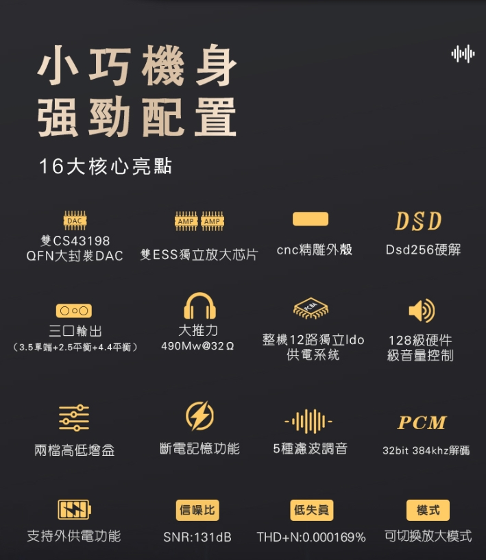 ● EMI抗干擾晶片搭配軍工級4層沉金主板,聲音更純淨