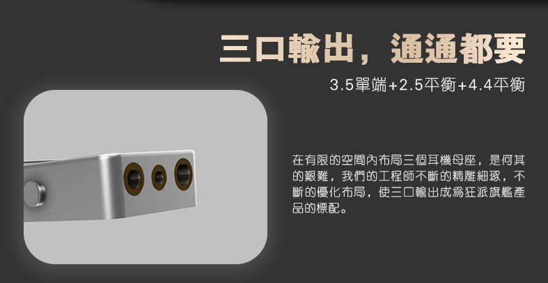 **三口輸出:3.5mm單端、2.5mm平衡、4.4mm平衡**