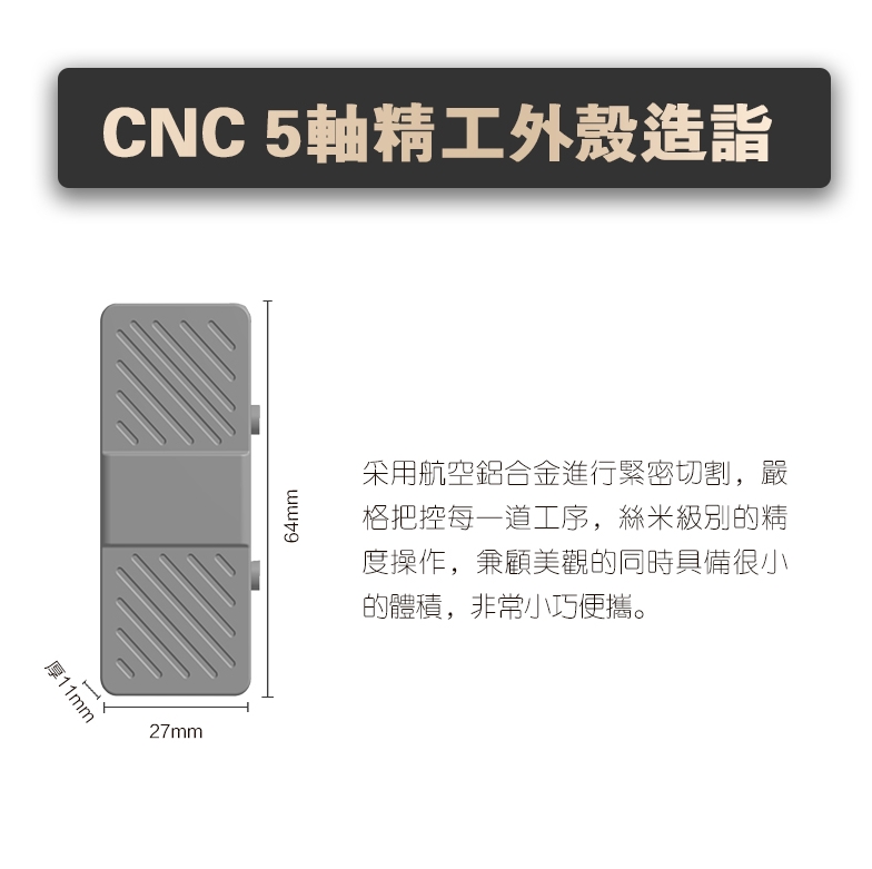 - 體積:64×27×11mm (凸出部分不計)