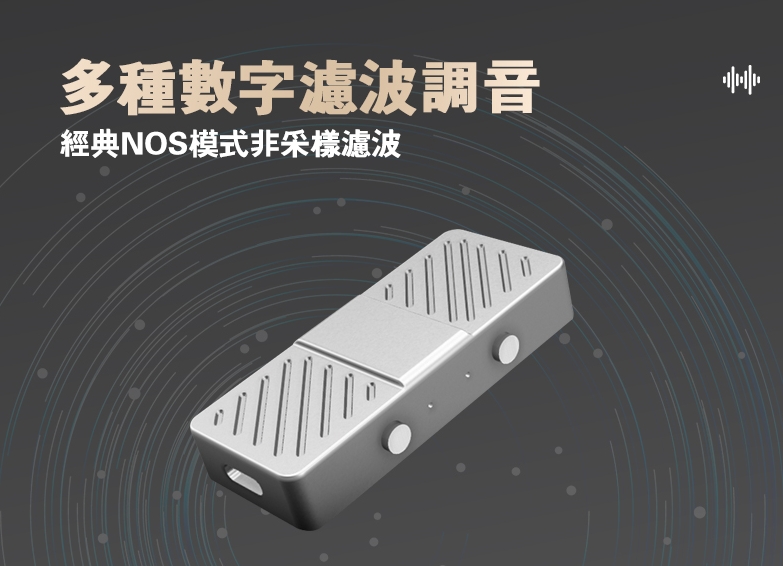 KP2提供5種濾波調音模式,從高頻明亮、人聲靠前到低頻加深等風格都能切換。經典NOS(非採樣濾波)更能讓音樂呈現原汁原味的聲音表現,滿足對音質挑剔的金耳朵。
