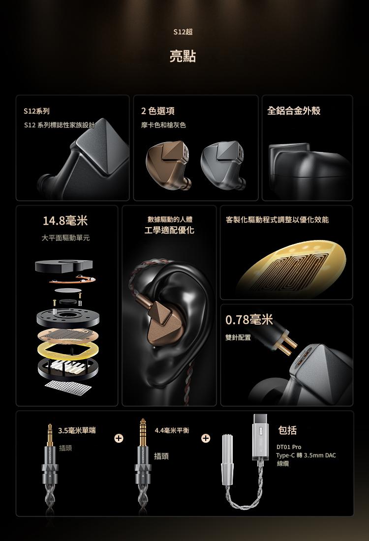 全套配件一應俱全:隨附專屬硬殼收納盒、多組矽膠耳塞,以及 DT01 Pro (3.5mm to USB-C) 解碼轉接頭,讓手機也能輕鬆驅動。