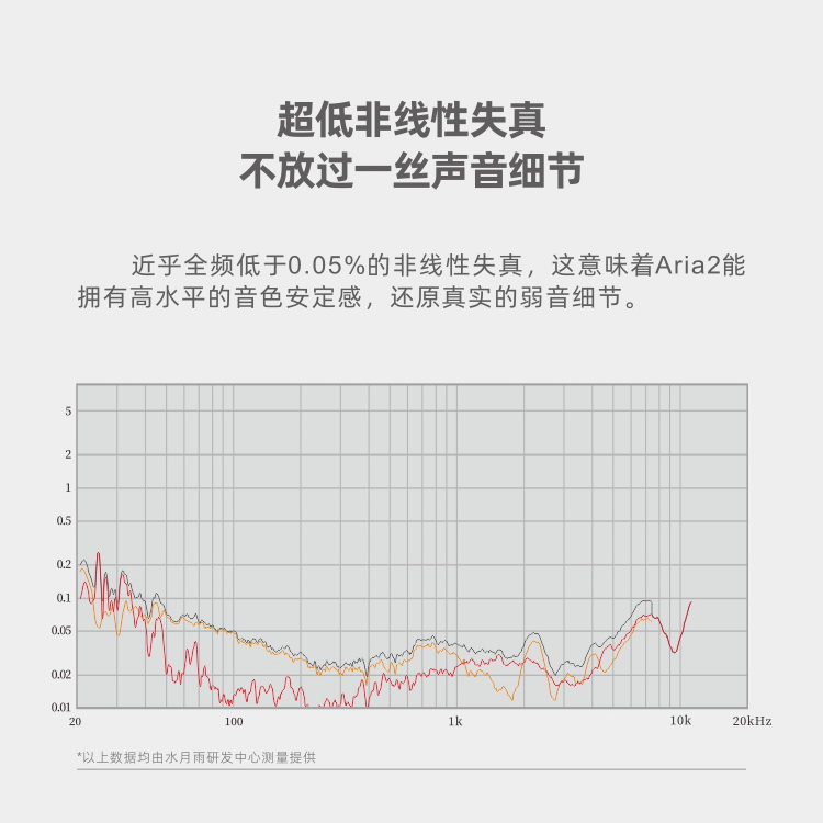 近乎全頻低於0.05%的非線性失真,這意味著Aria2能擁有高水準的音色安定感,還原真實的弱音細節