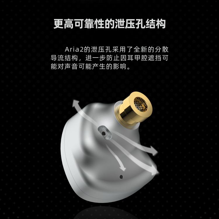 Aria2的洩壓孔採用了全新的分散導流結構,進一步防止因耳甲腔遮蔽可能對聲音可能產生的影響。