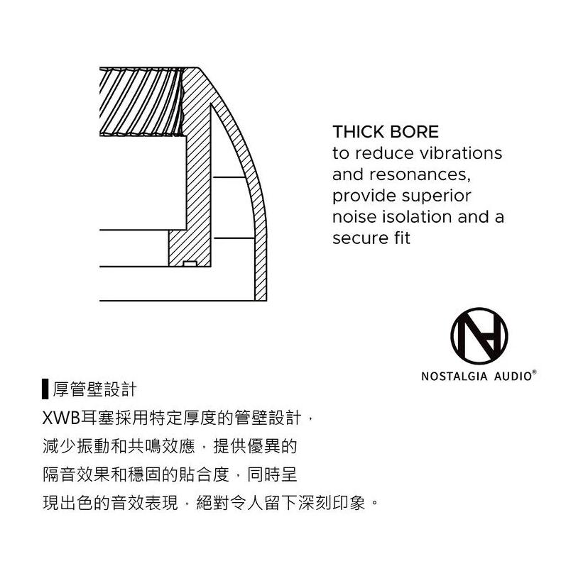 除了「特寬出音管口」設計外, 我們的XWB耳膠還具有厚管壁設計,