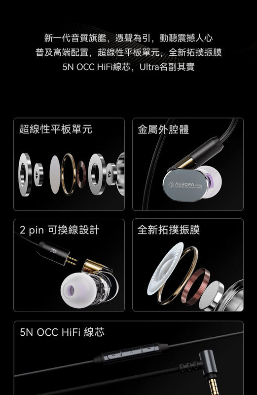 由ROSESELSA工程師謝先生,聯合前東京音響高橋先 生深度參與研發極光Ultra 調音及設計,共創新一代平 板動圈聲學架構,精確傳遞歌曲感情,還原器樂和人聲 表現,如臨現場,原聲再現。