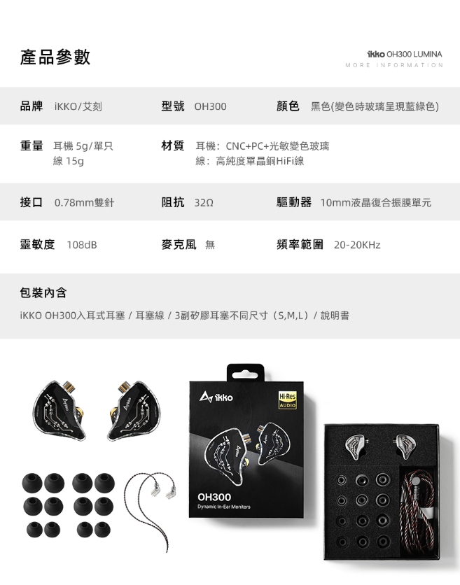 iKKO OH300 Lumina Hi-Res 單動圈 耳道式耳機 光敏變色外蓋