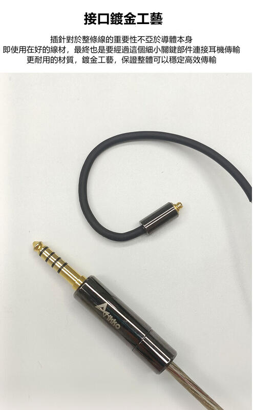 插針對於整條線的重要性不亞於導體本身 即使用在好的線材,最終也是要經過這個細小關鍵部件連接耳機傳輸 更耐用的材質,